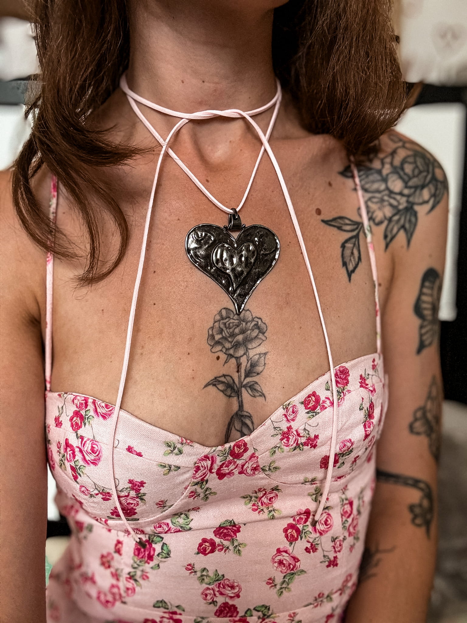 CHOCKER DONNA DUŻA ZAWIESZKA SERCE NA RZEMYKU