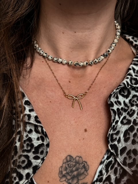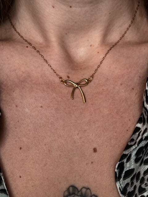 Odkryj delikatny urok naszego łańcuszka, który łączy w sobie elegancję i nowoczesność. Zawieszka w kształcie kokardki to nie tylko modny element biżuterii, ale również symbol subtelności i kobiecej siły. Wykonany ze stali chirurgicznej, ten złoty łańcuszek jest nie tylko piękny, ale i niezwykle trwały.