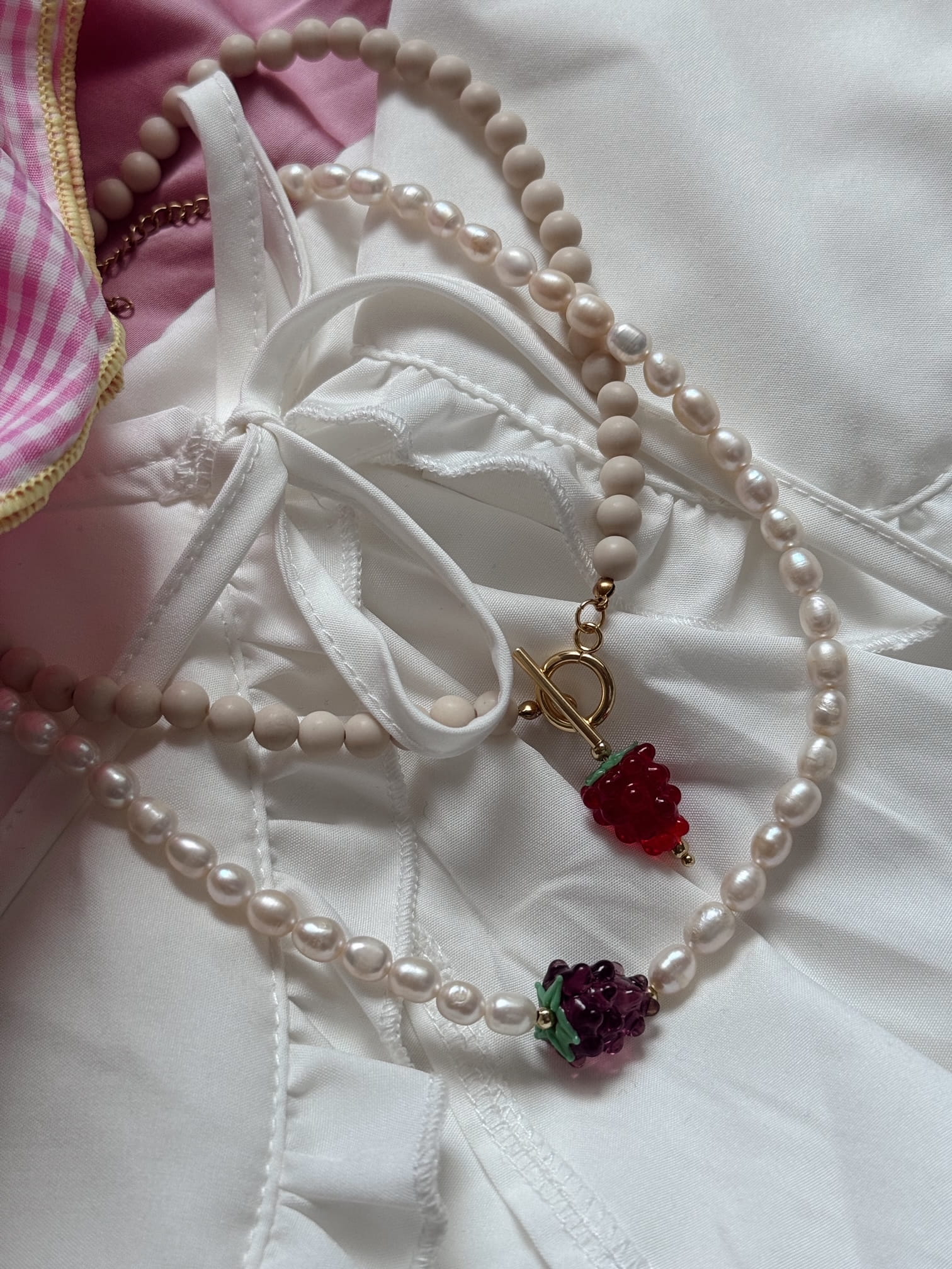 NASZYJNIK JASMINE KAMIENIE RZECZNE I MALINA