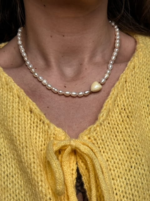 NASZYJNIK LOVER NATURALNE PERŁY I SERDUSZKO CERAMICZNE BUTTER YELLOW ŻÓŁTE