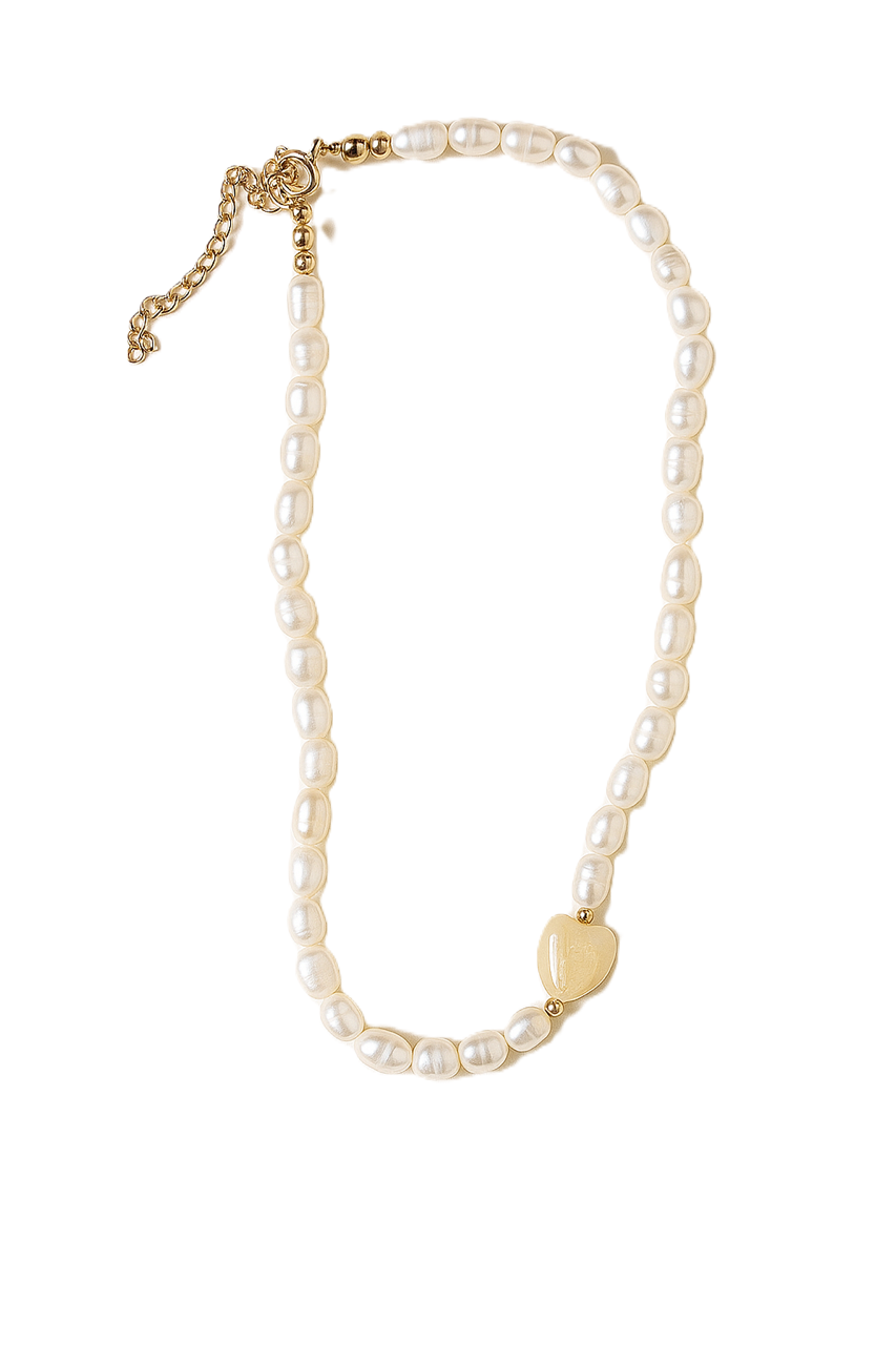 NASZYJNIK LOVER NATURALNE PERŁY I SERDUSZKO CERAMICZNE